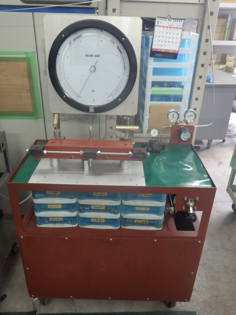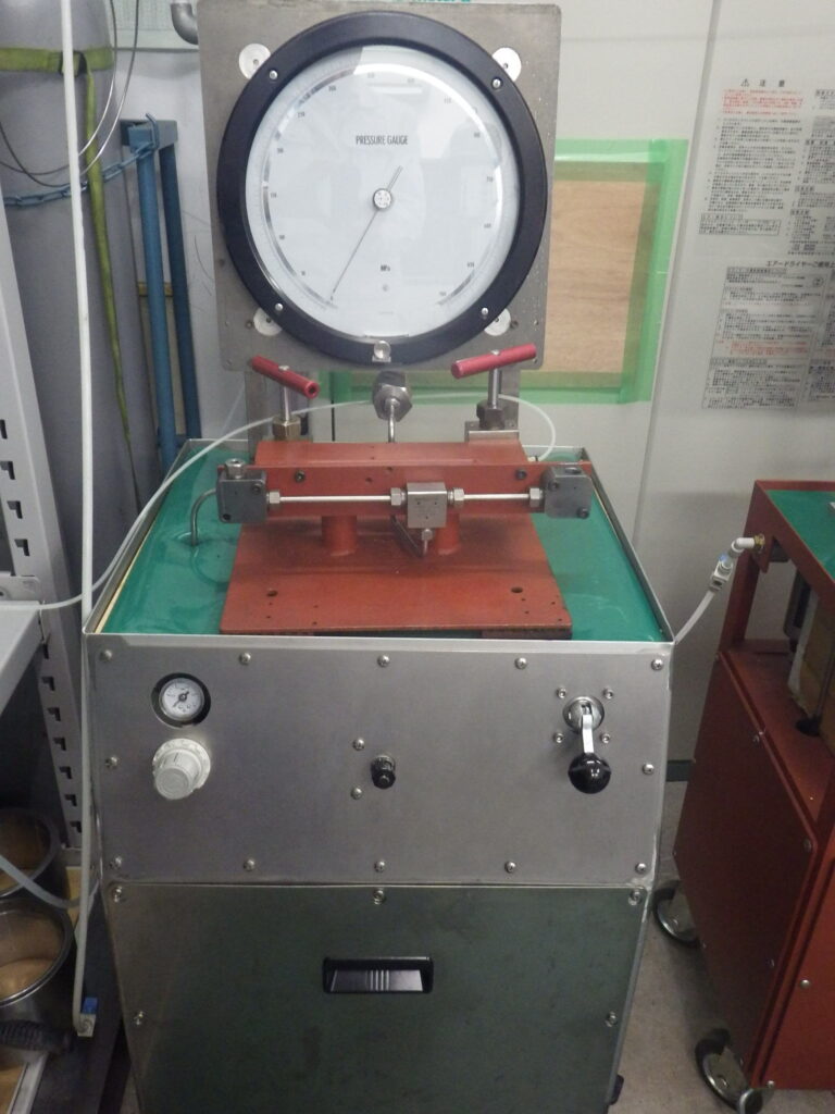 当社では、①~④の自社製設備と⑤基準圧力計を所有しており、耐圧試験、気密試験、破壊試験、繰返し衝撃試験の委託検査を行っております。
